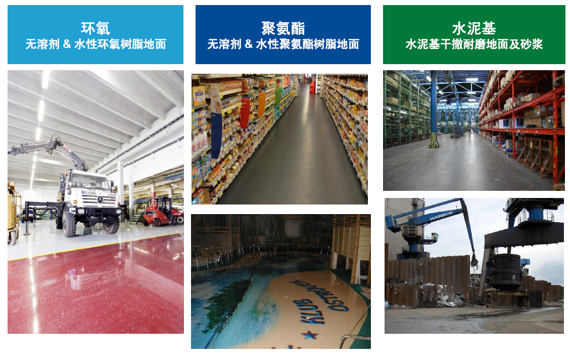 MasterTop 地坪解決方案基于聚氨酯、環(huán)氧樹脂和膠粘技術,適用于工業(yè)、商業(yè)建筑及教育、健康部門