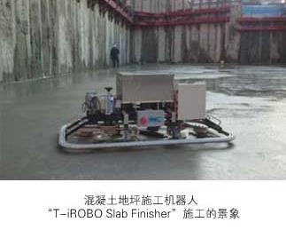 大成建設(shè)2016年4月18日宣布,開(kāi)發(fā)出了混凝土地坪施工機(jī)器人“T-iROBO Slab Finisher”。采用這種機(jī)器人可以減輕技術(shù)工人(泥工)的身體負(fù)擔(dān),節(jié)省人力,提高作業(yè)效率。