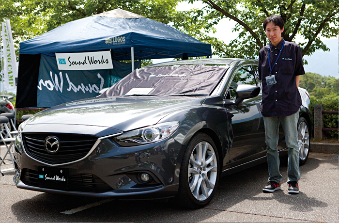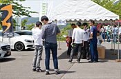 そして迎えた當日の午前10時、個人參加のお客様のクルマが會場に続々と入り始めました。場內(nèi)は奧がショップデモカーのゾーン、中央付近がソニックデザインのデモカーとサウンドクリニックのゾーン、そして出入口に近い手前側(cè)が試聴デモ可能な個人參加車両のゾーンになっていて、試聴デモを行わない個人參加車両は隣接する一般駐車場へと案內(nèi)されます。初回ということもあって、試聴デモ可能ゾーンに乗り入れることを躊躇されるソニックデザインユーザーの方も多かったようですが、ユルい雰囲気は會場の中も外もたいして変わりません。今回ちょっと躊躇しちゃったみなさん、ぜひ次回は「聴かせる側(cè)」も楽しんでくださいね。