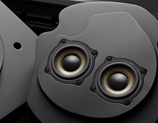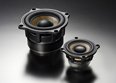 配有永久磁石,在中高音域有卓越發(fā)揮的52毫米口徑全頻驅(qū)動(dòng)器=SD-N52R型(右)和有超大型磁性材料迸發(fā)出巨大力量的77毫米口徑低音揚(yáng)聲器=SD-N77R型(左)。每一種都使用HAC振動(dòng)板來達(dá)到音色的統(tǒng)一。