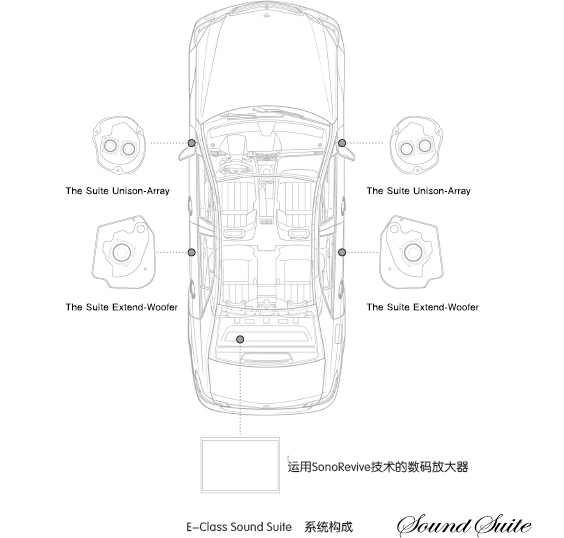 無論是音質(zhì)音域的調(diào)整還是電力增幅,都可以進行嚴格控制的數(shù)字放大器●將原裝音響的聲音高品質(zhì)重現(xiàn)的SonoRevive技術(shù)●由兩組共四個口徑只有52毫米的寬頻驅(qū)動器SD-N52N組成的無縫高精度鋁壓鑄全頻驅(qū)動器「The Suite Unison-Array」●裝有專用端口調(diào)節(jié)器、由一組共兩個頂級微型揚聲器組合「SD-N77N」組成的雙重高精度鋁壓鑄可添加式揚聲系統(tǒng)「The Suite Extend-Woofer」●根據(jù)乘客的有無而進行的音域和音質(zhì)的調(diào)節(jié)、和根據(jù)車門的開關(guān)和與倒車檔聯(lián)動的而對音響開關(guān)進行操作的全自動化控制