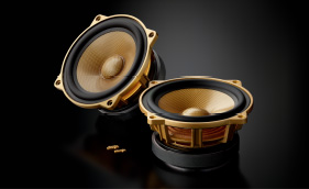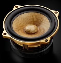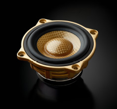 小型高性能スピーカーづくりのノウハウを汎用性の高いサイズに展開した130mm口徑ウーファーユニットです。本格的なサブウーファーとしても、2?3ウェイシステム用のウーファーとしても使用できる卓越したワイドレンジ特性を持ち、もちろん「SD-N52GA」との組み合わせにも最適。超大型フェライトマグネットを投入したパワフルな磁気回路やアルミモノブロックフレームなど、ロングセラーユニットとして高い人気を誇った「SD-130R」の基本設(shè)計に、コーン部とセンターキャップ部の雙方に最高品質(zhì)のピュアアラミドを使用した専用設(shè)計のオールピュアアラミド振動板を組み合わせることで、低歪とスムーズな周波數(shù)レスポンス、そして全帯域にわたる高い分解能を?qū)g現(xiàn)します。またフレーム部には、振動板色とのマッチングを図ったゴールド塗裝仕上げを施しました。本製品には、車內(nèi)のお好きな場所に取り付けられるゴールド染色仕上げの専用ロゴバッジ(アルミニウム製?ダイヤカット加工)を1セットにつき2個ずつ同梱しています。